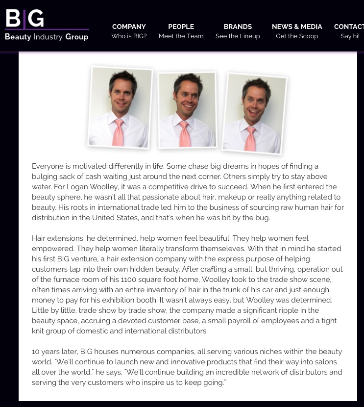 Website copy for Beauty Industry Group. Original site found here.